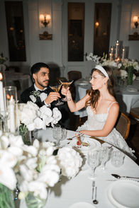 Die Hochzeit von Pegah und Max im Morrhof war geprägt von zeitloser Eleganz. Eine helle, klassische Farbwelt in Weiß und Creme sorgte für ein besonders edles Gesamtbild. Dezente Floristik, hochwertige Materialien und viele Kerzen schufen eine stilvolle Atmosphäre, die perfekt zur Location und zum Charakter der Feier passte.